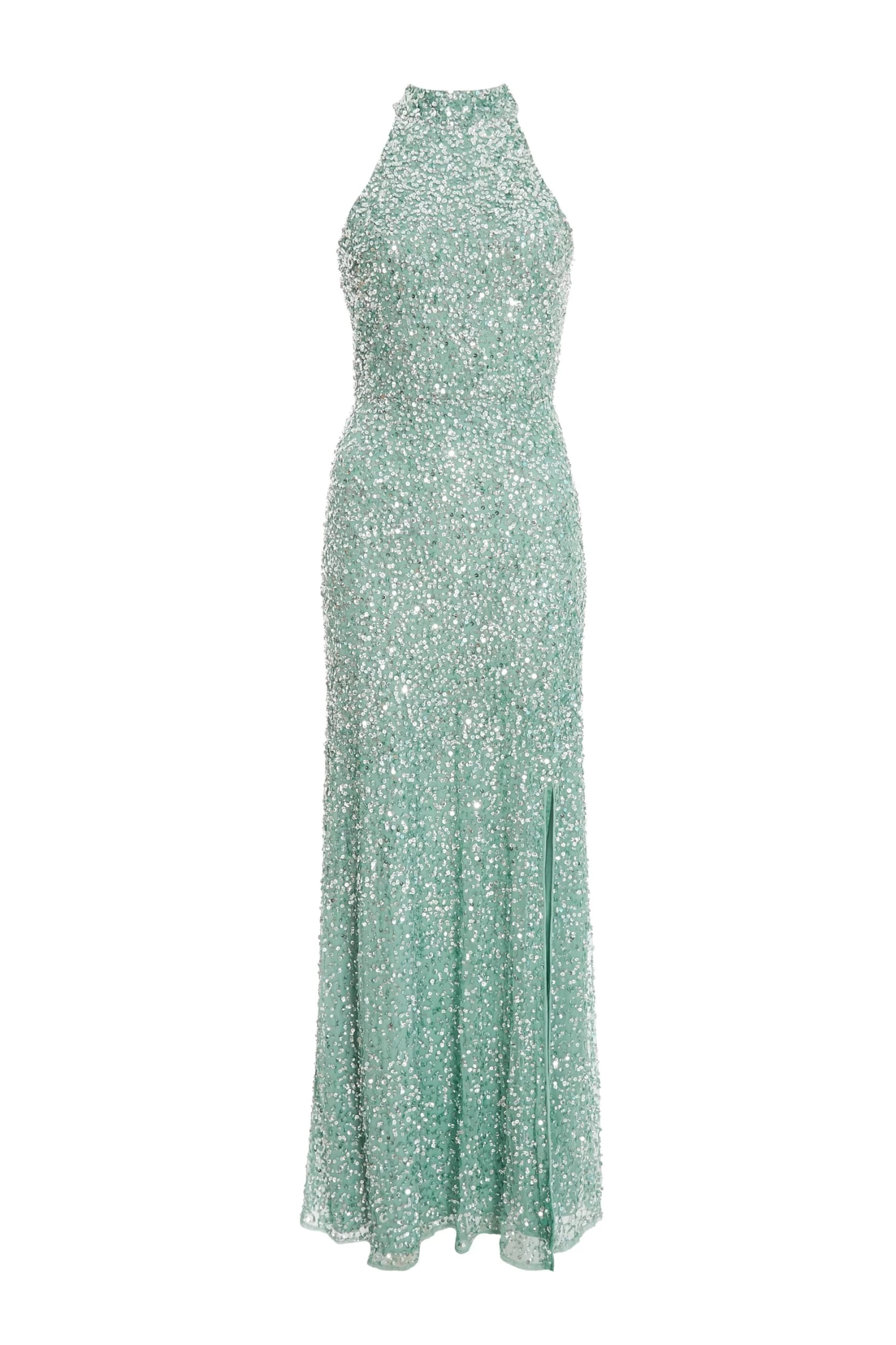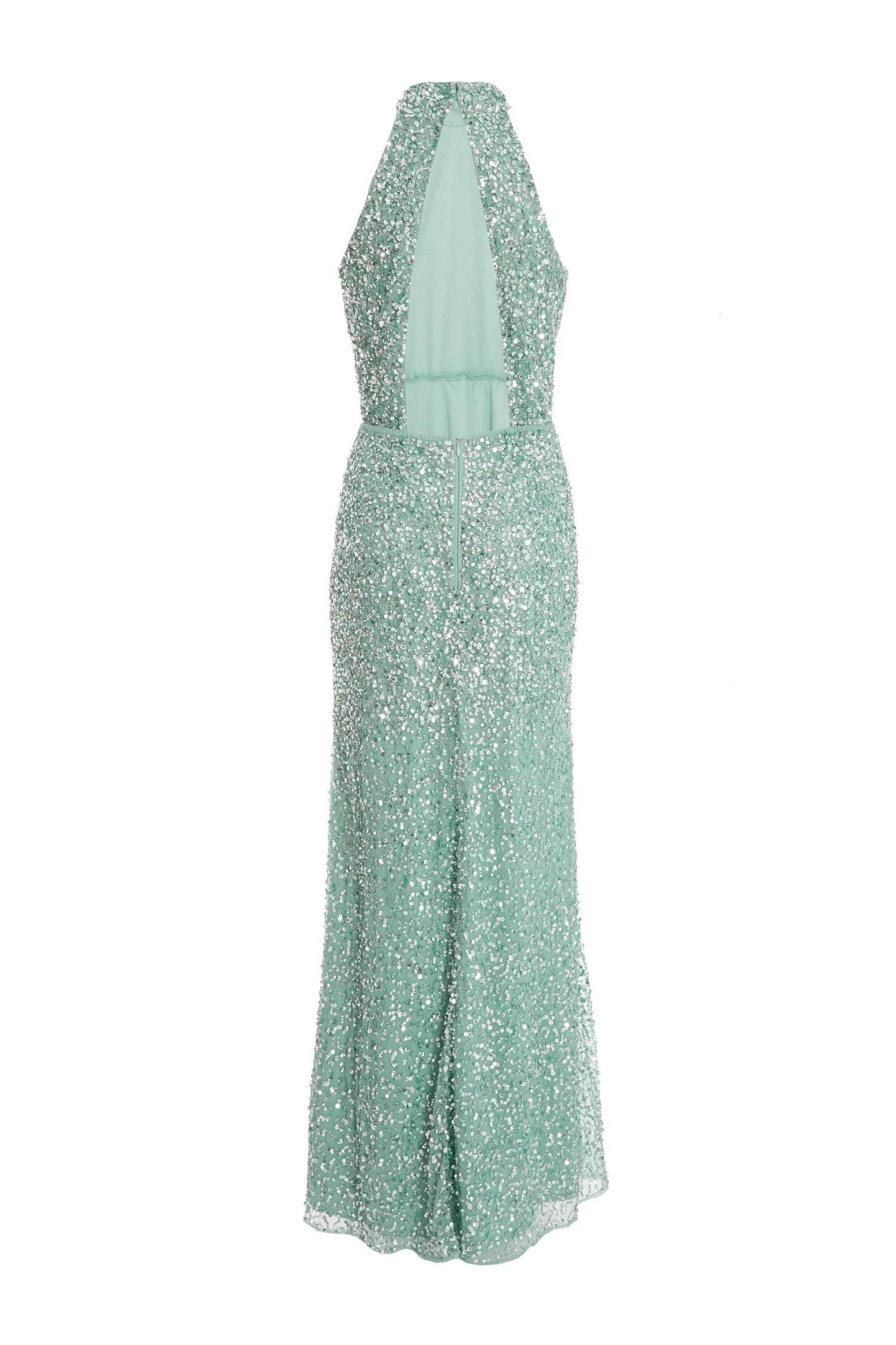 Green Sequin Halter Neck Fishtail Maxi Dress