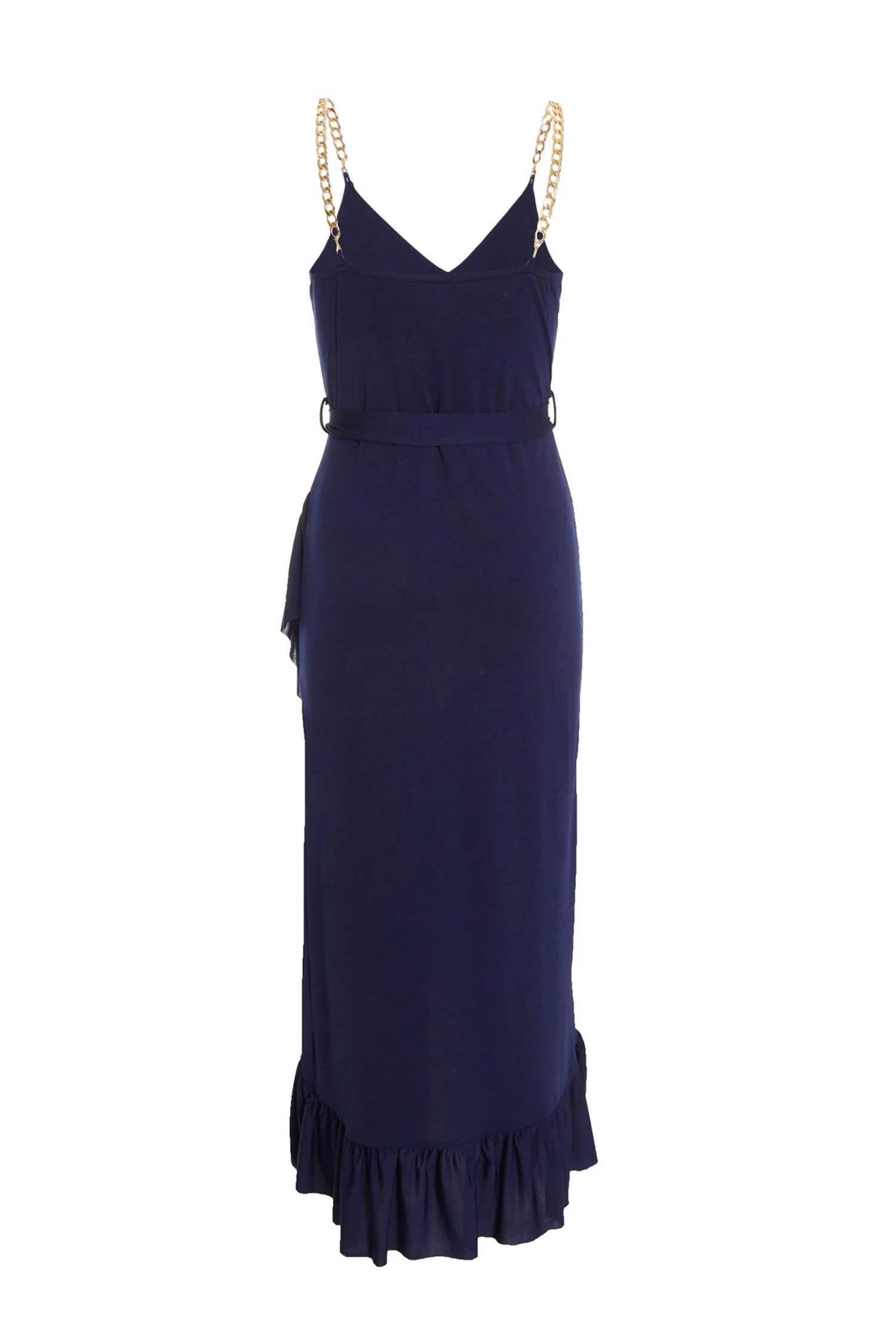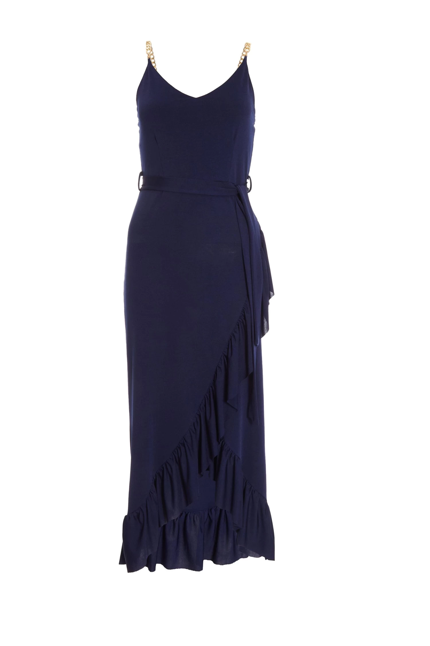 Navy Slinky Chain Wrap Midi Dress