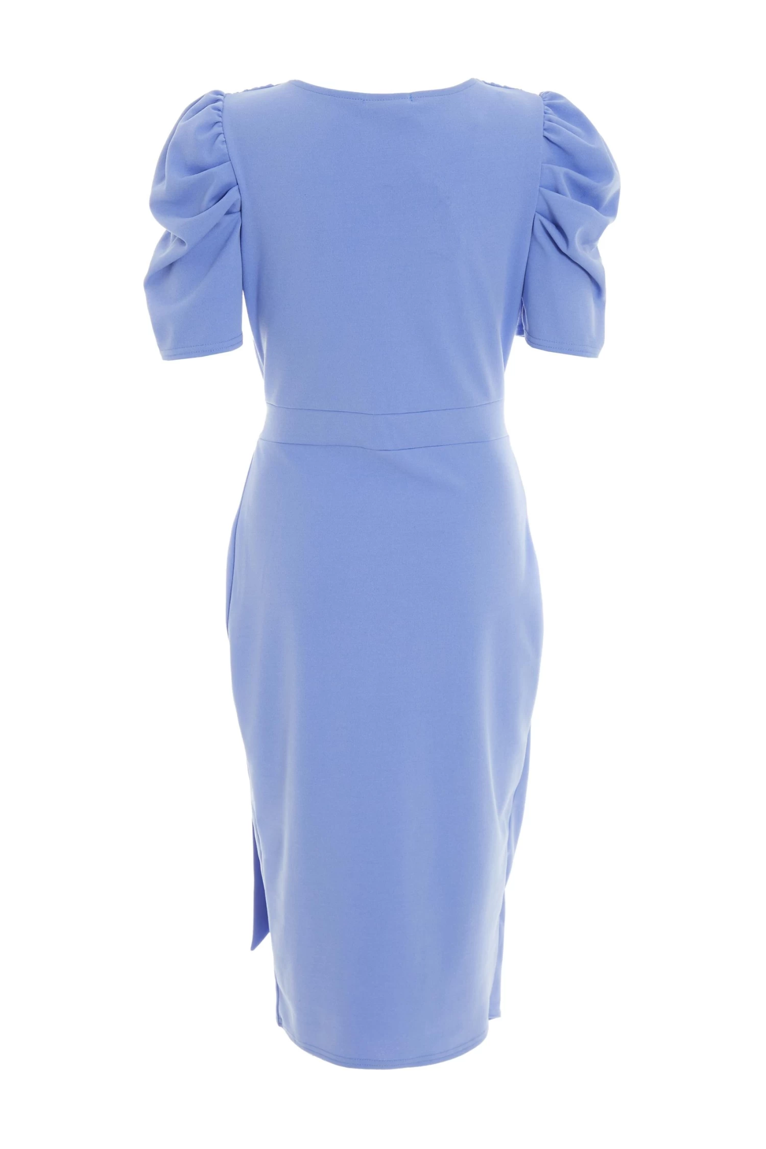 Pale Blue Wrap Puff Sleeve Midi Dress